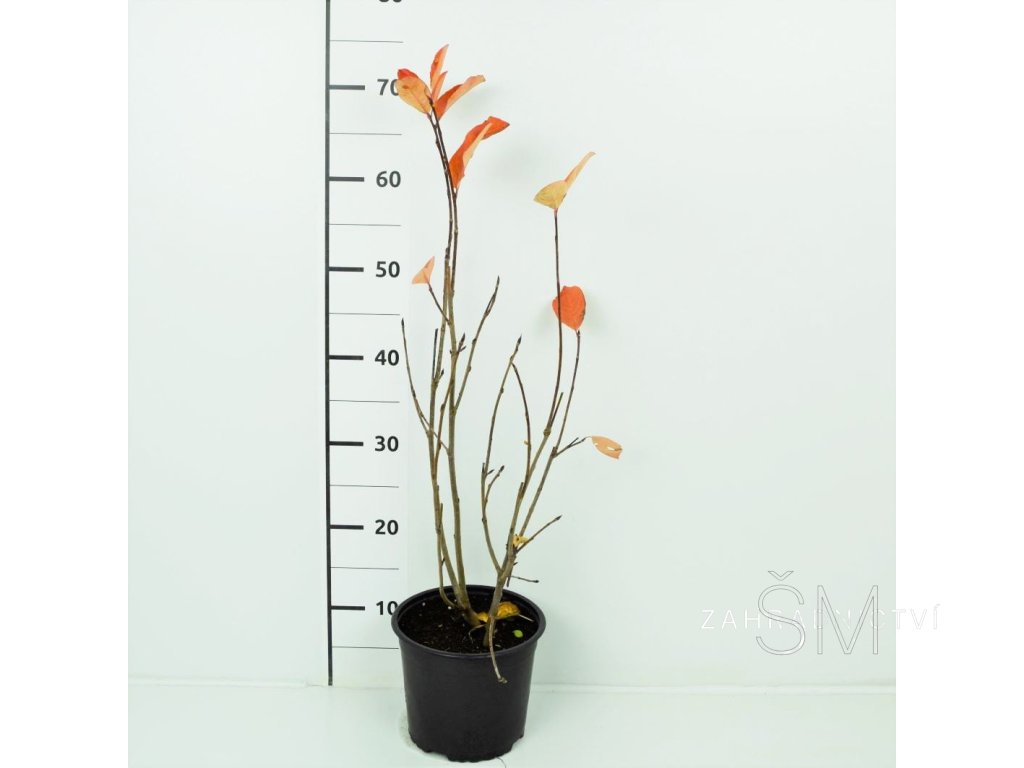 Je vzpřímený, rozprostřený, poněkud zaoblený, ale vytáhlý, opadavý keř, který obvykle dorůstá do výšky 1 – 2m. Estetické jsou shluky bílých jarních květů s 5 okvětními lístky (květen), lesklých eliptických až obvejčitých tmavě zelených listů s jemně ozubenými okraji a černých podzimních bobulí (velikost borůvek).