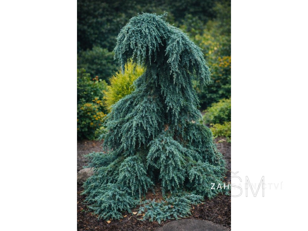 Nízký, plazivý až mírně vystoupavý jehličnan s velmi volným, nepravidelným habitem. Dorůstá zpravidla 0,6–3 m výšky a 1,5–3 m šířky. Výhony jsou dlouhé, jemně převislé a lze je vyvázat k opoře o různé výšce. Jakmile přestaneme větve vyvazovat, tak začnou přepadat dolů.