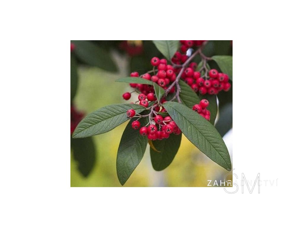 Velmi efektní jasně červené až oranžové bobule, které dozrávají na podzim a vytrvávají až do zimy. Plody jsou jedním z dekorativních taháků tohoto kultivaru.