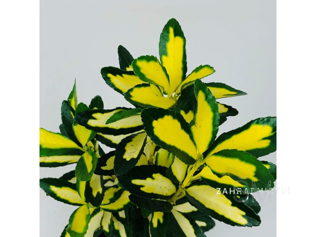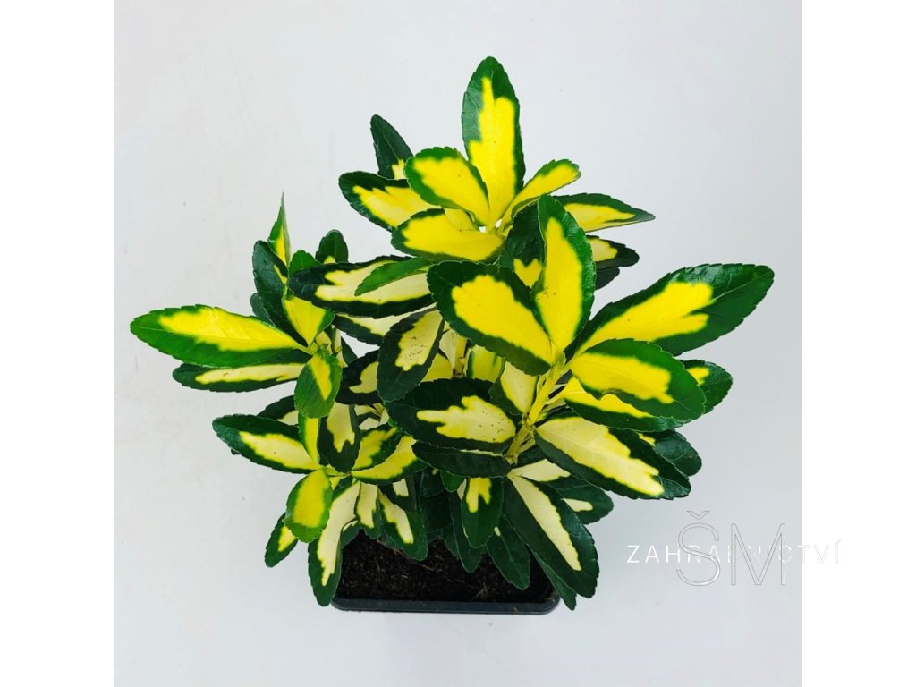 Tento kultivar má výrazné,lesklé, žluté listy s tmavě zeleným okrajem , kvete nenápadně, na podzim se vytvářejí oranžovo růžové plody.Dobře snáší řez, je vhodné tvarovat jej řezem především na jaře.