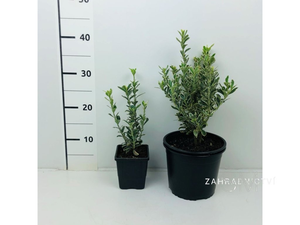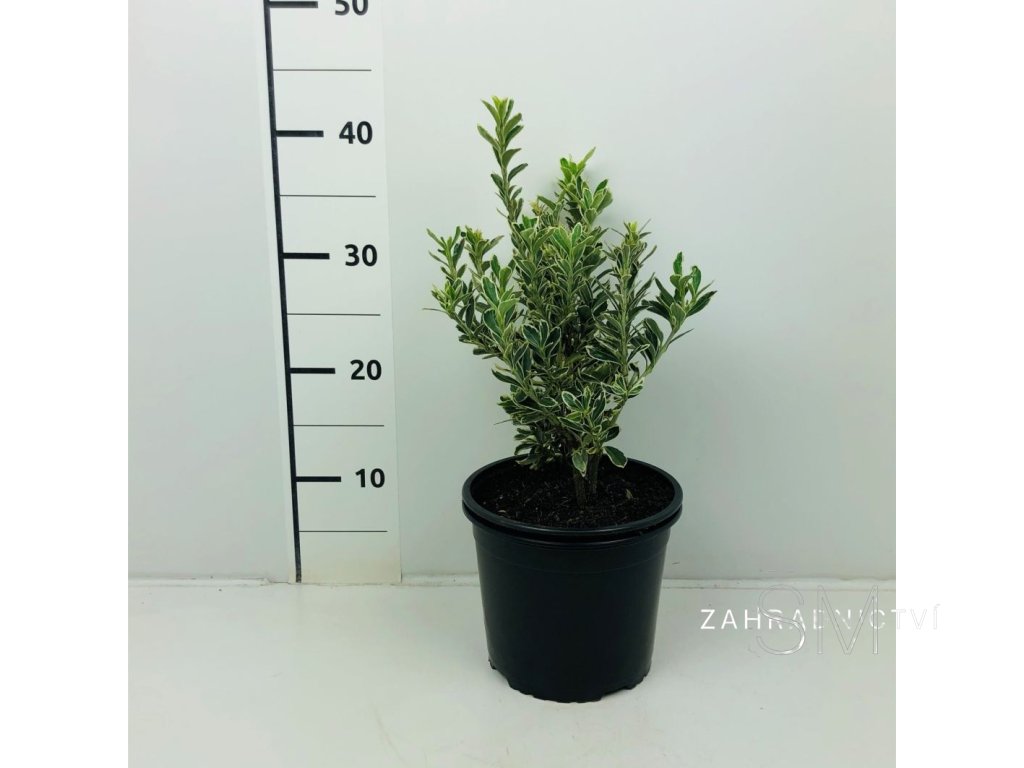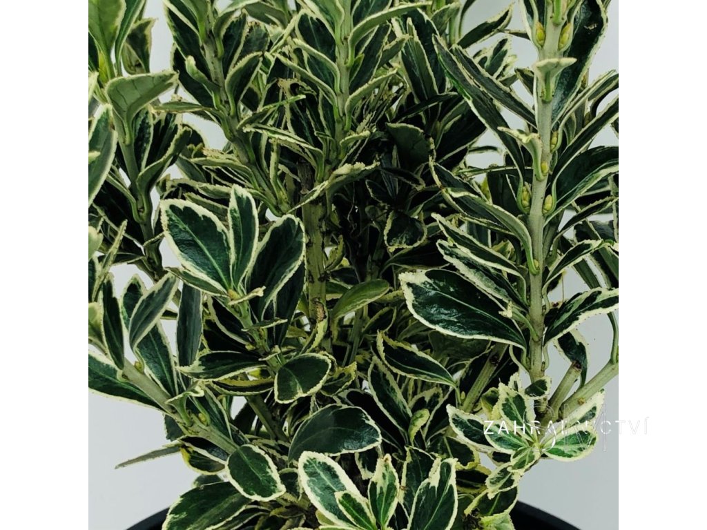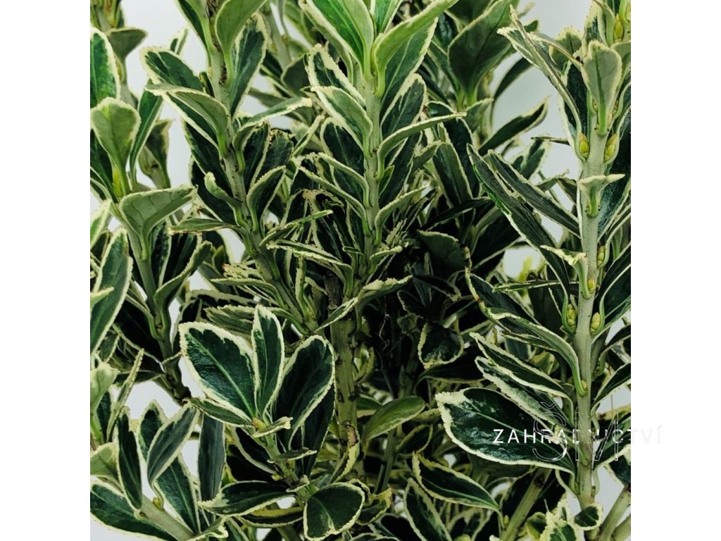 je stálezelený keř, který se řadí do čeledi Celastraceae – jesencovité. Tvoří zelené užší protáhle oválné zelené listy s nepravidelným bílým lemováním. Kvete a plodí jenom výjimečně. Roste vzpřímeně a kompaktně do výšky i šířky kolem 1,5 metru. Nejlépe se mu daří na slunném stanovišti na závětrné straně a ve vlhké, propustné půdě. Uplatní se ve skupinových výsadbách, do živých plotů, ale i do nádob. Je mrazuvzdorný.