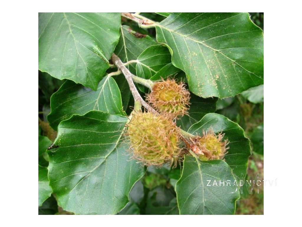 Trojhranné bukvice dozrávající na podzim. Jsou potravou pro lesní zvěř a ptactvo, okrasný význam je spíše přirozený.