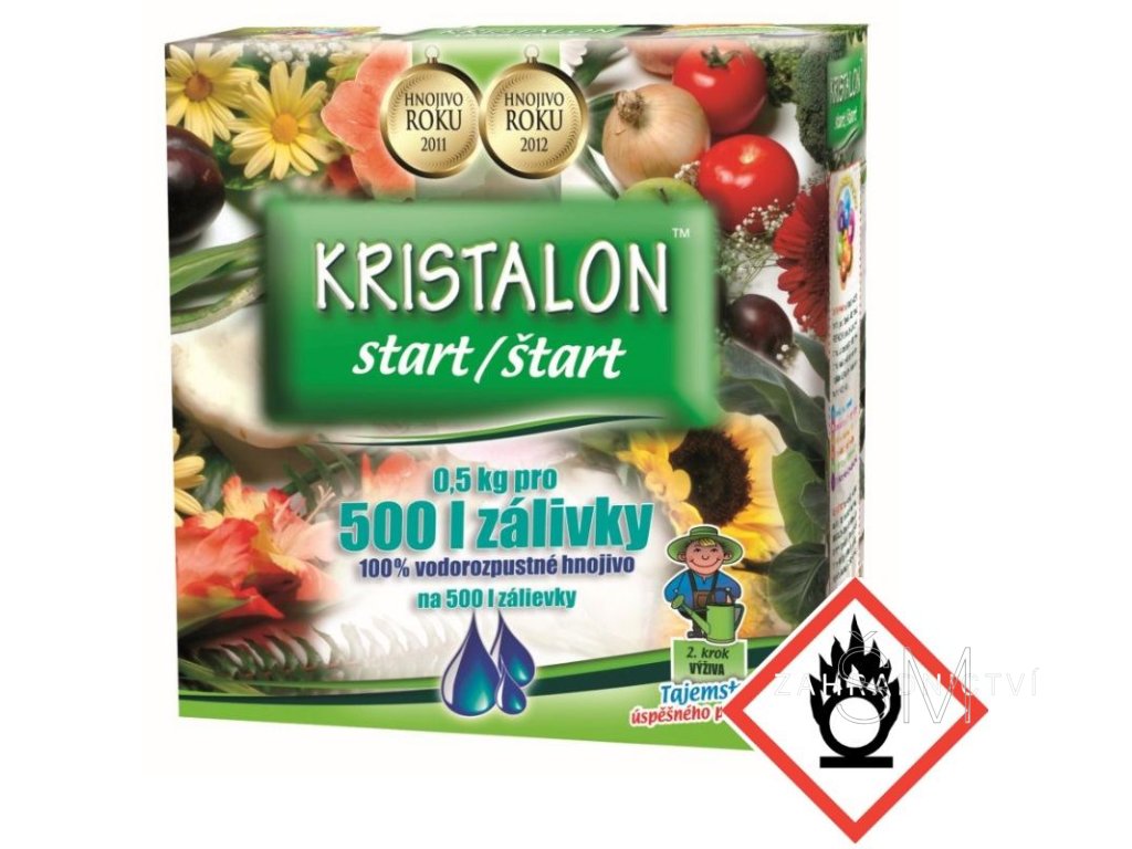 KRISTALON Start je krystalické ES hnojivo, vodorozpustné a určené pro rychlejší start v počátečním růstu a dále v produkčním období rostlin. Kristalon je univerzálně použitelný pro zeleninu, okrasné rostliny včetně balkonových, cibuloviny, drobné ovoce i ovocné stromy. Zamezuje žloutnutí listů.