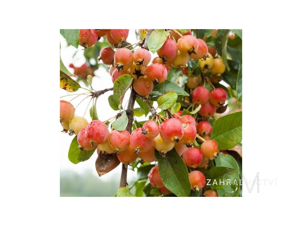 Nápadné, sytě červené, kulaté plody dozrávají na podzim a na stromě vytrvávají až do zimy, patří k nejvýraznějším mezi okrasnými jabloněmi.