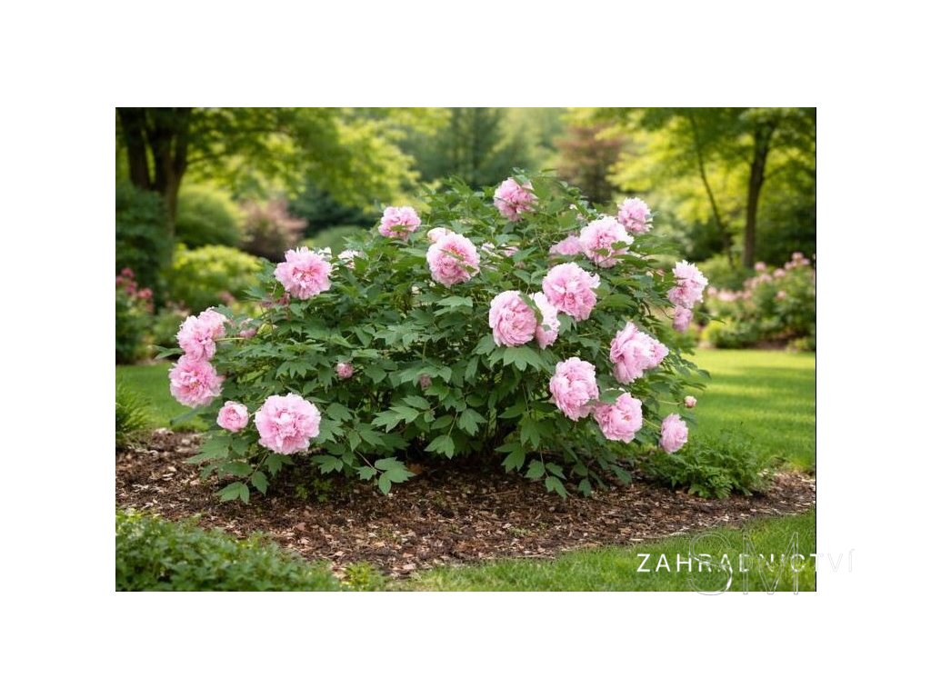 Paeonia suffruticosa v kultivarech Pivoňka křovitá (Dřevitá)
