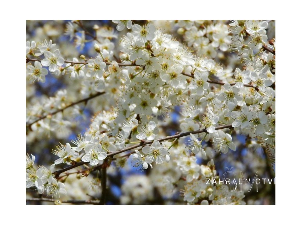 Velmi bohaté kvetení brzy na jaře (březen–duben), drobné bílé květy se objevují ještě před rašením listů a zcela pokrývají větve.