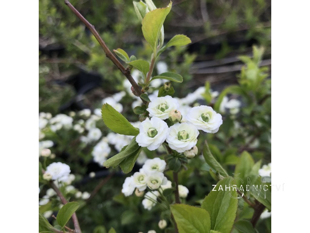 Je to vzpřímený, opadavý keř s převislými větvemi. Květ je bílý, objevuje se před olistěním. List je vejčitý s pilovitým okrajem, zelený. Na podzim mění barvu do žluté, oranžové až červené. Stanoviště slunné nebo částečně přistíněné. Půdu preferuje propustnou a středně vlhkou. Ve výsadbách je můžeme použít do keřových skupin nebo jako solitéru. Mrazuodolnost do -26°C